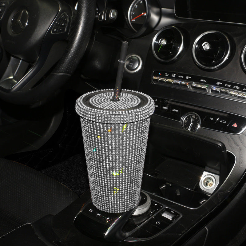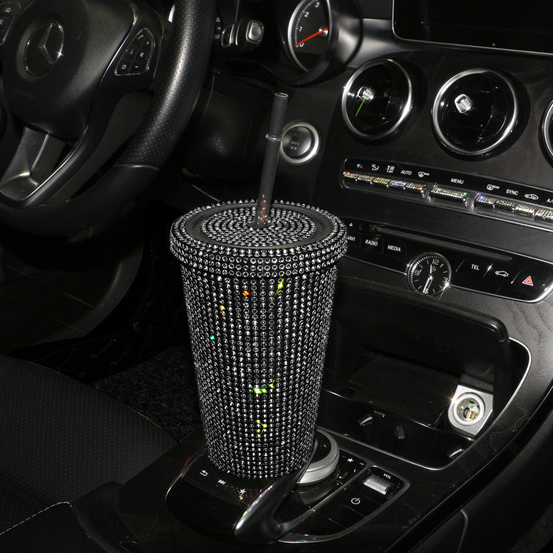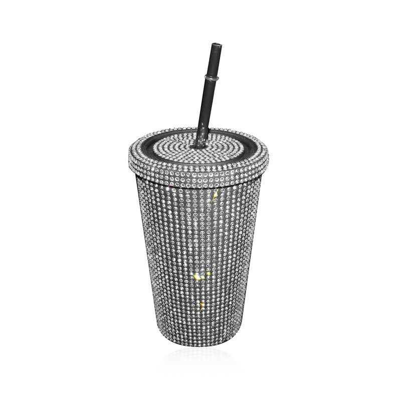 Simple Stylish With Lid Plastic Hot Drilling Drink Cup With Straw